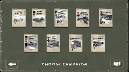 - 9 Mission Rising Storm Campaign (Playing as the Americans) - 12 Mission American Campaign. (Playing as the Americans) - 12 mission German Campaign. (Playing as the Germans) - 12 mission Bastogne campaign. (Playing as the Germans) - 12 mission Northern Front campaign. (Playing as the Americans) - 12 mission Iron Cross campaign. (Playing as Germans) - 12 mission Bombardment campaign. (Playing as the Americans) - 12 mission Juggernaut campaign. (Playing as the Americans)