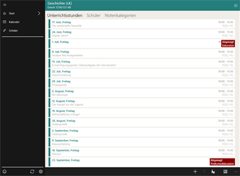 - Nichts mehr vergessen: Du kannst blitzschnell nachschauen, wann welcher Schüler seine Hausarbeiten oder das Material vergessen hat und Eintragungen zu jeder Stunde vornehmen.