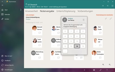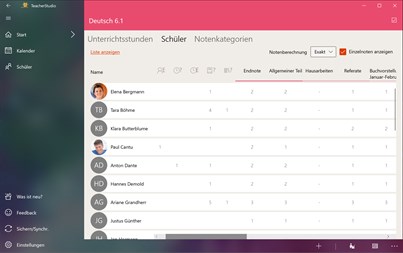 - Benoten ohne Kopfrechnen: TeacherStudio übernimmt als Dein Notenbuch für Dich das Ausrechnen der Endnoten für jeden Schüler automatisch. Du hast natürlich das letzte Wort und kannst jederzeit pädagogisch benoten.
