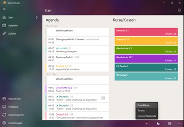 - Alle Informationen für Lehrer an einem Platz: TeacherStudio vereint Notenverwaltung, Lehrerkalender und Kursheft in einem. So findest Du schneller alle Informationen zu Deinem Unterricht an einem Platz.