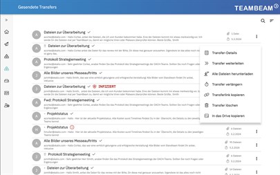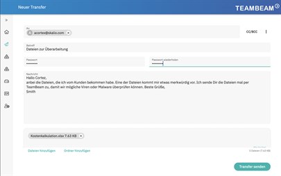 Die App um auf den Datentransferdienst TeamBeam zuzugreifen. TeamBeam erlaubt das sichere Versenden von großen Dateien über das Internet.