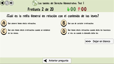 - Más de 200 Test. - Más de 4.500 Preguntas. - 12 exámenes oficiales. - Simulación de examen. - Preguntas actualizadas continuamente. - Dos modos de realizar un mismo test (modo de respuesta instantánea o modo examen). - Estadísticas de los test realizados.