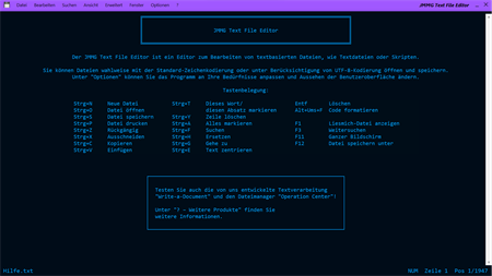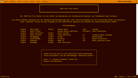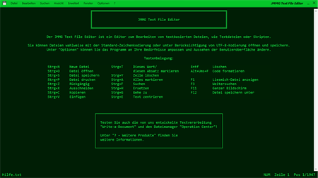 Kostenloser Texteditor: Der JMMG Text File Editor ist ein Editor zum Bearbeiten von textbasierten Dateien, wie Textdateien oder Skripten. Er enthält viele nützliche Funktionen zur Textbearbeitung.