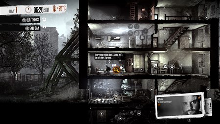 从前所未有的视角去体验战争的真相。《这是我的战争》中将以日夜循环来区分时间。白天的狙击手威胁将使你无法离开藏身之处,因此只能在此期间集中精力管理避难所:制造,交易并照顾幸运者们的日常需求。当夜幕降临,你将需要派遣一位平民前往一系列独特地点执行搜集任务,寻找能够帮助大家活下来的关键物资。