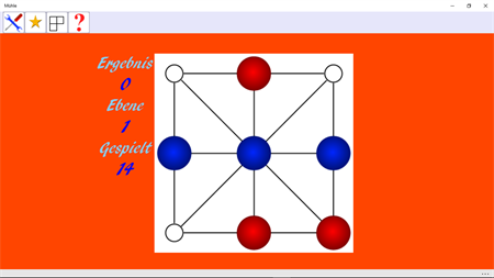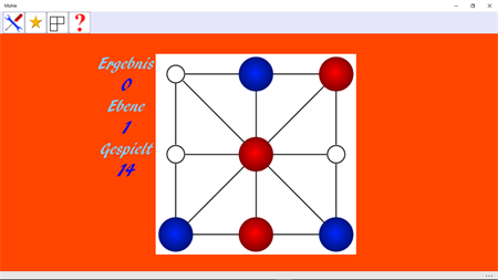 Jeder Spieler hat drei Stück. Der Gewinner ist der erste Spieler, der ihre drei Stücke auf einer Linie auf dem Brett gezogen auszurichten. Das Board ist leer, das Spiel zu beginnen, und die Spieler setzen abwechselnd ihre Stücke auf leeren Kreuzungen. Sobald alle Stücke platziert, Spiel fährt mit jeder Spieler bewegt einen ihrer Stücke pro Umdrehung. Ein Stück kann auf eine freie Stelle auf dem Brett zu bewegen, nicht nur eine benachbarte ein. Es gibt drei Ebenen jeweils immer schwieriger.