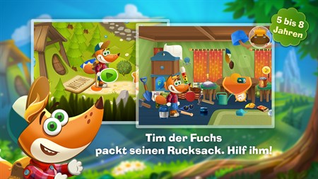 Tim the Fox's Travel ist ein lustiges, buntes Spiel, indem der Spieler einem kleinen Fuchs auf einer Reise hilft, Herausforderungen bewältigt werden wie durch Dickicht navigieren und Flüsse überqueren, einen Ausweg aus trügerischen Irrgärten finden, Matheaufgaben lösen und andere interessante Ziele. Auf dieser magischen Reise trifft Tim the Fox gute Freunde, auf wunderschöne Orte wie eine sonnige Lichtung und einen sandigen Strand, macht Sport beim Aufladen von Gemüse und spielt Melodien auf einer Flöte mit einer Note nach der anderen. Das Spiel hilft Kindern bei der Entwicklung von Logik, Gedächtnis, Mathefähigkeiten, Aufmerksamkeit und selektiver Wahrnehmung. Perfekt für Kinder zwischen 5 und 8 Jahre, von Vorschulkindern bis zu Erst- und Zweitklässler.