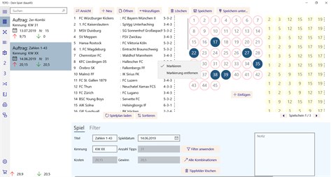 Mit TOTO - Dein Spiel (6x45) erstellen, drucken und verwalten Sie die Tippreihen von der "Auswahlwette 6 aus 45". Sie tippen auf den Ausgang von sechs Fußballspielen, die mit den torreichsten Unentschieden enden (ohne Verlängerung) Die App bietet dafür mehrere Spielvarianten, um Ihre Ausgabe niedrig zu halten. Mit dem klassischen Voll- und Teilsystem oder 3er Garantiespiel erhöhen Sie Ihre Chance auf den Höchstgewinn. Weitere Filtermöglichkeiten können Ihnen viele Tippreihen ersparen und vergrößern damit das Tippfeld. Haben Sie gewonnen? Prüfen Sie einfach selbst, ob Sie mit Ihrem Spielauftrag erfolgreich waren.