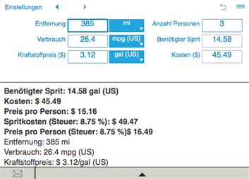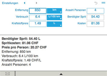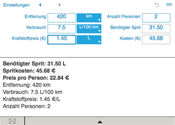 Der Spritrechner sendet Ergebnisse und Berechnungshistorie per E-Mail.