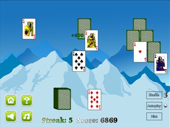 Play the Tri Peak Solitaire card game where you match cards arranged in three pyramid shapes. Clear as much decks as you can to get a high score!