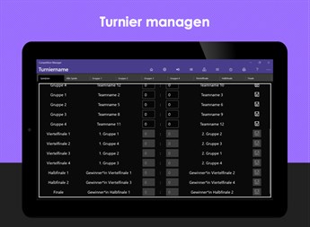 Der Competition Manager ist ein Manager für Turniere und Wettkämpfe. Er bietet die Möglichkeit Turniere anzulegen, Turnierpläne zu erstellen, sie durchzuführen und auszuwerten. Die Art des Turniers kann flexibel gestaltet werden, von einem einfachen Alle-Gegen-Alle-Turnier bis hin zu Turnieren mit Vorrunde, Hauptrunde und KO-Phase. Insgesamt stehen sieben verschiedene Turniermodi zur Verfügung. Die Teams die aus den jeweiligen Runden weiterkommen, Länge der KO-Phase oder eine optionale Rückrunde, kann an individuelle Wünsche angepasst werden. Als zusätzliche Features bietet die App einfache Punktezähler, eine Stoppuhr, eine Druckfunktion und eine Projektor Ansicht.