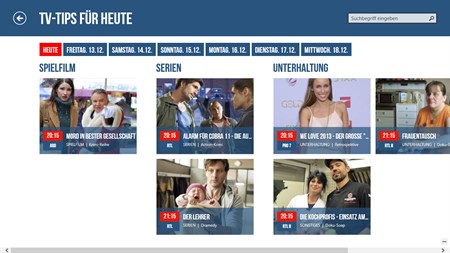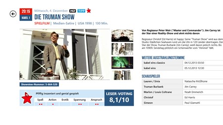 Schnell, einfach, übersichtlich - das ist das TV Programm der neuen TV Movie App! Endlich macht Fernsehen wieder Spaß! Sehen Sie auf einen Blick, was heute Abend im TV läuft. Tippen Sie auf Jetzt, 20.15 oder 22 Uhr, um das Fernsehprogramm zur jeweiligen Uhrzeit zu sehen.