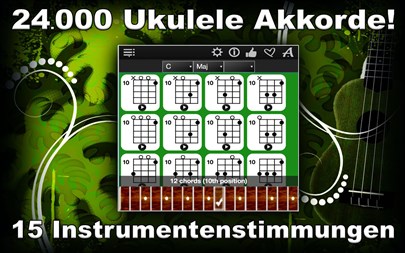 1 Tag GRATIS testen! Finden Sie die Ukulele-Akkorde mit dem perfekten Klang für Ihre Lieder! Dank eines speziell entwickelten Algorithmus, werden die Akkorde mit allen möglichen Optionen in allen 17 Positionen des Ukulelengriffs in Diagrammform angezeigt. Wählen Sie einfach einen Akkordgrundton auf der linken Seite aus, einen Akkordtype in der Mitte oder auch zusätzlichen Akkordtypen auf der rechter Seite aus und durchsuchen Sie die Akkorden mit “Ukulele Chords Compass”! App Eigenschaften: - Anzahl der Akkorde: 24.000, - Unterstützte Ukulelen: Soprano, Tenor, Baritone, Concert und Sopranino. - Die Möglichkeit, jeden angezeigten Akkord abzuspielen, - Ausgewählte Akkord-Diagrammen via Drag&Drop zu Editoren hinzufügen (für die Kreation Ihrer eigener Lieder), - 56 Unterstützte Akkordtypen: Maj, Maj 6, Maj 7, Maj 9, Maj 11, Maj 13, Maj Maj7, Maj Add9, Min, Min 6, Min 7, Min 9, Min 11, Min 13, Min Maj7, Min Add9, Dim, Dim 6, Dim 7, Dim 9, Dim 11, Dim 13, Dim Maj7, Dim Add9, Aug, Aug 6, Aug 7, Aug 9, Aug 11, Aug 13, Aug Maj7, Aug Add9, Sus2, Sus2 6, Sus2 7, Sus2 9, Sus2 11, Sus2 13, Sus2 Maj7, Sus2 Add9, Sus4, Sus4 6, Sus4 7, Sus4 9, Sus4 11, Sus4 13, Sus4 Maj7, Sus4 Add9, 5, 5 6, 5 7, 5 9, 5 11, 5 13, 5 Maj7, 5 Add9, - Die authentische Ukulelen-Akkordklänge, - Zur Verfügung stehen alle gängigen Ukulele-Stimmungen: 1. Soprano Standard, 2. Soprano C, 3. Sopranino Standard, 4. Sopranino New, 5. Tenor Low G, 6. Tenor New, 7. Baritone Standard, 8. Baritone Canadian, 9. Open A, 10. Open B, 11. Open C, 12. Open D, 13. Open E, 14. Open F, 15. Open G, - Unterstützung für die Linkshänder, - Lautstärkeregelung.