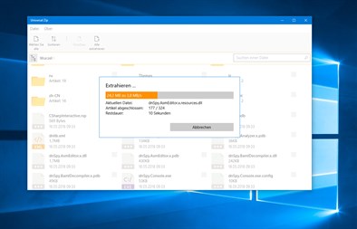 Universal Zip ist 2-3x schneller als die anderen populären Entpackprogramme im Microsoft Store.