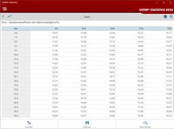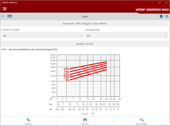 Einzigartige Benchmarking-Möglichkeiten Highlights der USTER® STATISTICS sind die Abdeckung einer grösseren Bandbreite von Materialien, Qualitätsmerkmalen und Garnfeinheiten für ein umfassenderes Benchmarking entsprechend den wachsenden Anforderungen der Industrie. Die am häufigsten genutzten Inhalte für einzelne Materialien werden dabei weiterhin voll unterstützt.