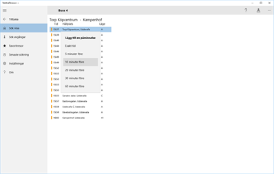 När du sökt ut en resa kan du ställa in en påminnelse vid en viss hållplats. Bra för att inte glömma att gå i tid eller för att gå av i tid.