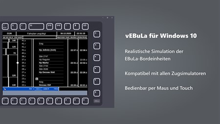 Mit vEBuLa erhältst Du eine detailgetreue Simulation der EBuLa-Bordgeräte moderner Triebfahrzeuge für alle gängigen Zugsimulatoren. Wähle zwischen vordefinierten Fahrplänen, oder erstelle einen neuen Fahrplan anhand von definierten Laufwegen für ein schnelles Spiel.