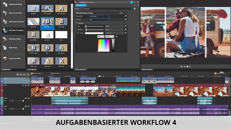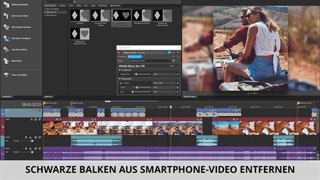 VEGAS Movie Studio 17 vereinfacht die anspruchsvolle Videobearbeitung. Der Guided Video Creator hilft Ihnen, Filme in nur wenigen Schritten zu erstellen. Dabei können Sie jederzeit auf fortgeschrittene Tools zugreifen, wenn Sie für das nächste Level bereit sind. Dank der GPU-Beschleunigung können Sie die Videovorschau in bester Qualität flüssig anschauen. Der Black Bar Fill Filter bietet eine Lösung, um die schwarzen Balken bei hochformatigen Smartphone-Videos zu entfernen. Die zahlreichen Effekte und Übergänge finden Sie jetzt noch schneller und einfacher dank des neuen Effektfensters. Es erlaubt Ihnen auch, Favoriten anzulegen.