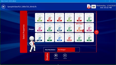 Video Convert+ (GOLD Edition) helps you to convert ANY video file format to ANY video file format you want (e.g. MP4, AVI, WMV, WEBM, FLV, OGG, MKV, etc.) with a simple step. It also supports to resize the video to a smaller or a higher resolution (e.g. from 720P to 480P, 1080P to 720p, etc.). This way you can shrink a video file size saving free space on your hard drive.