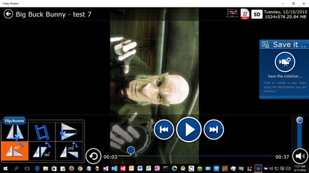 Video Rotate+ helps you to Rotate or Flip ANY video file and create a new Video in two simple steps. It supports 6 different choices (rotate 90 degrees, 180, 270, flip horizontally, flip vertically, etc..). The new video keeps automatically the dimensions of the initial video without re-sizing or quality lost (e.g. 1280x720 video when rotated by 90 degrees produces a 720x1280 video). It supports almost every different video file format that exists (.mkv, .webm, .flv, .3gp, .mpg, etc...) It also supports 3 different formats for the newly created video (.wmv, .mp4 or .avi)
