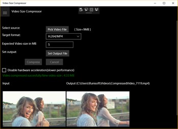 In order to use the application, just specify the size of the video in MB that you want to achieve and it will compress the video to that size.The compressed video will be saved as a new video on the computer.