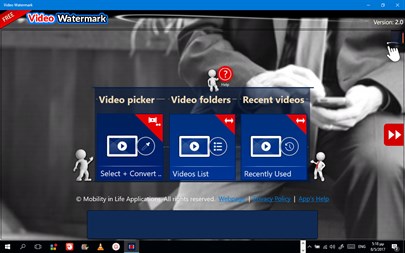 Protect your videos by adding your preferred logo, image or photo inside them, or just write your own message into. If you ever wanted to add your own Logo or Message inside your videos, or you just want to create a TV Product style for your personal videos, then the Video Watermark app. is here for you… Video Watermark helps you to create wonderful watermark-style backgrounds and apply them in your video in two simple steps. Save the (new) watermarked video and share it immediately with your friends! The app. supports all video formats as source videos to begin. When creating your own watermark, you are able to apply as many images or messages you want. Transparent logos are welcomed. Drag-and-drop them in your watermark or resize them. A full preview is always available without the need of creating new video each time. When you are satisfied with the result, apply the watermark and a new (watermarked) video will be created in MP4 in the folder you want. The new video keeps automatically the dimensions of the initial video without re-sizing or quality lost. The app. supports almost every different video file format that exists (.mkv, .webm, .flv, .3gp, .mpg, etc...). You are able to share immediately the new watermarked video with other users and apps with the "Share.." option (Email, YouTube, etc..). The app is completely free without any extra charges!