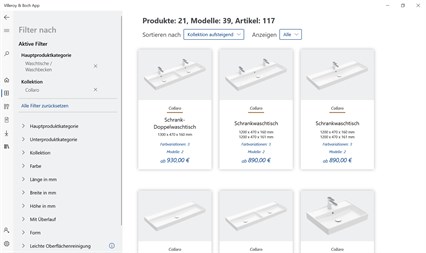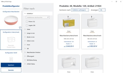 Im Handumdrehen zum passenden Produkt: - Schnell die gewünschte Produktkonfiguration finden - Kundenwünsche im Verkaufsgespräch zum Leben erwecken - 360°-Visualisierung des Waschbereichs mit Farb- und Modellwechsel - Überzeugend präsentieren und beraten bis zur Kaufentscheidung - Automatisch erstellte Mustermappe für Ihr Angebot