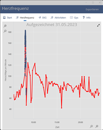 Mit dieser App können Sie die Herzschlagdaten und die EKGs, die Sie mit Ihrer Withings Smartwatch aufgezeichnet haben, in allen Details betrachten. Und Sie können diese Grafiken als png Datei exportieren oder die Daten im csv Format speichern. Die exportierten EKG-Daten sind für die Analyse mit anderen Tools (zum Beispiel dem Python-Package pyHRV) aufbereitet.