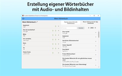 Lernen Sie die deutschen Vokabeln und Redewendungen auf einfache wie unterhaltsame Weise. Damit bauen Sie Ihre Deutschkenntnisse schnell und effizient aus. Die App kennt nicht nur einzelne Wörter, sondern auch ganze Redewendungen für die praktische Kommunikation und eignet sich hervorragend zum Auffrischen vorhandener Kenntnisse.