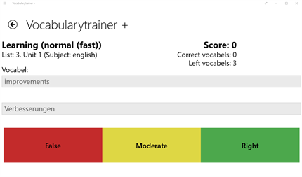 Diese App bitte noch nicht herunterladen, außer du willst sie testen. Sie funktioniert echt gut, aber für den Erhalt der Vokabellisten werde ich nicht meine Hand ins Feuer legen. ;) Wenn du Verbesserungsvorschläge hast, vlt auch Lob oder Kritik, dann schreibe bitte eine Rezension.