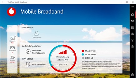 Mit dieser Anwendung können Sie Ihre mobile Welt verwalten. Greifen Sie auf Ihr Online-Konto zu, rufen Sie Nachrichten und Sonderangebote ab oder holen Sie sich Hilfe und Unterstützung. Sie können die App mit einer SIM-Karte von Vodafone oder einem seiner Partner und einem Mobil-Breitband-Gerät wie einem USB-Dongle oder Modem verwenden. Informationen dazu, welche Mobil-Breitband-Geräte kompatibel sind, finden Sie auf dem Bildschirm 'Details' oder in den häufig gestellten Fragen (FAQ).