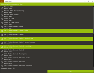 Englisch Vokabeltrainer für die Klasse 5 in Deutschland. Die App enthällt edie Vokabeln von Klett Redline 1 bis einschließlich Unit 3. Diese können auch als allgemeinen Einstieg gelernt werden. Bitte beachtet, dass es sich bei der App um keine endgültige Version handelt. Bitte gebt uns Feedback, damit wir die App mit eurer Hilfe verbessern können. Schickt das Feeback, Wünsche, etc. an info@xeam-solutions.com. Bitte unterstützt uns mit Wortlisten.