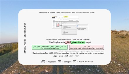 Some months ago, after unsuccessful search for any quick pic/video browser for 180/360VR content to share pictures and videos taken with popular VR camera for desktop environment without need for VR and it become clear for author, that such tools is needed. The goal was to be able to share videos and pictures taken with popular VR camera with family members who don't own any VR headset, or to view this content on a flat screen or 3D projector, without VR headset on. Result is here, and it grows thanks to you! Enjoy the new release!