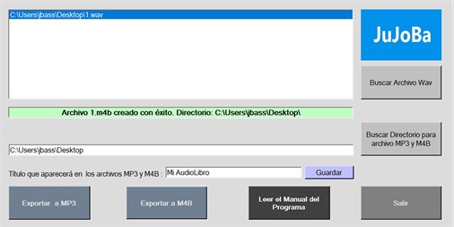 El programa Wav2Mp3-M4B , es un programa sencillo, que convierte los archivos en formato .WAV , en otros archivos en formato MP3 y M4B. Como resultado, estos archivos convertidos tienen un formato aproximadamente 10 veces menor. Además pueden escucharse en prácticamente cualquier aparato de audio, ya sea celulares, computadoras, Iphones, Ipads, etc. El formato M4B se usa sobre todo en audiolibros, con lo que es posible escucharlos en programas para dichos tipos de archivos. Especialmente, si se graban archivos del audio de voz, grabados directamente por la voz humana, será posible entonces escucharlos en los programas de audiolibros de Apple ®.