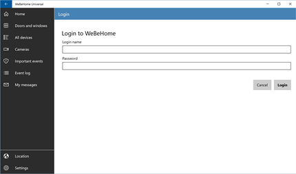 This application is an unofficial implementation for controlling WeBeHome cloud connected alarm systems from your Windows 10 Computer, Tablet or Phone.