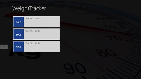 This app allows you to track your weight. Simple add your current weight and the data will be stored in the app. You can see it in a graph and also in a list where you can simply remove entries. So let's start to track your weight.