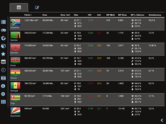Geographie Lern-App mit unzähligen Möglichkeiten und für jedes Alter, ob Kinder, Schüler, Erwachsene, Lehrer oder Senioren jeder kann die Welt entdecken. Als Weltalmanach und digitale Weltkarte zur Vorbereitung auf den Erdkundeunterricht. Oder als nützlicher Begleiter bei ihrem nächsten Auslandsaufenthalt informieren Sie sich über Zeitzonen und statistische Daten wie Bevölkerungswachstum, Arbeitslosenquote, Durchschnittsalter, Bruttoinlandsprodukt (BIP) nach Sektoren und weitere Kennzahlen.
