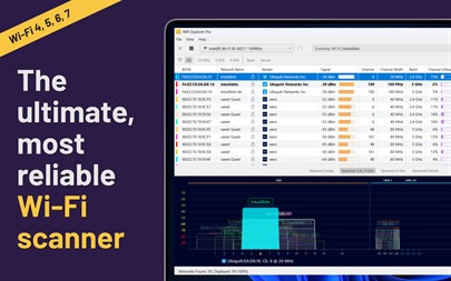 WiFi Explorer Pro is a Wi-Fi scanner and analyzer built to assist WLAN and IT professionals in designing, validating, and troubleshooting wireless networks. Its clear, crisp visualizations and in-depth data help you diagnose and optimize your network for faster and better Wi-Fi.