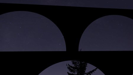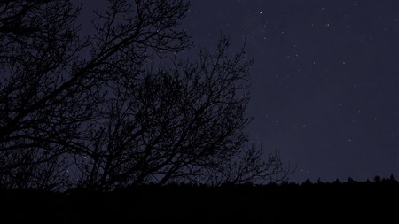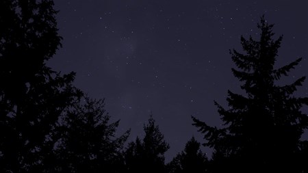 "Winterlicher Sternenhimmel III" entführt Sie in eine kalte Winternacht: Bewundern Sie den funkelnden Sternenhimmel, die Milchstraße und die nächtliche Szenerie.