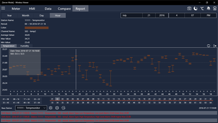 It provides: * Real Time Graphics Display of Temperature and Humidity * Hourly, Daily, Monthly, Annual Temperature Report * Comparison of Different Wireless Sensors reading * Alert of High or Low Temperature/Humidity * Alert of Low Sensor Battery Level * Email Alarm