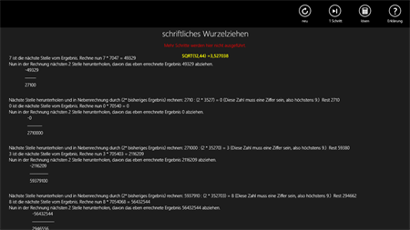 Diese App zeigt Schritt für Schritt, wie man schriftlich die Quadratwurzel einer positiven Zahl berechnet.
