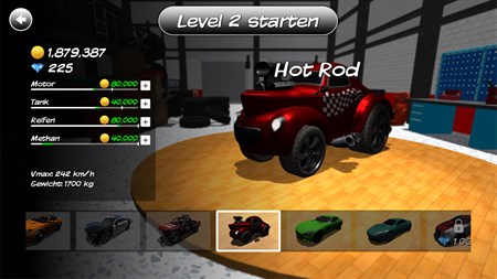 Erhalte Zusatzpunkte mit waghalsigen Stunts und tune mit den gesammelten Münzen deine Autos in der Werkstatt, um die maximale Leistung zu erreichen!