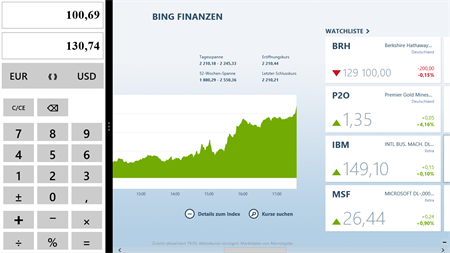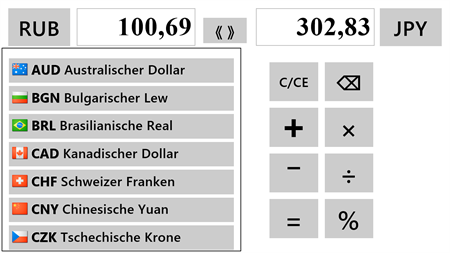 Einen Währungsumrechner mit extra großen Tasten und großer Anzeige. Konvertiert 34 Währungen, sogar ohne Internetzugang. Die integrierte Tastatur mit Taschenrechner erlaubt schnelle Umrechnungen und Rechenaufgaben in zwei Währungen parallel. Das interaktive 90 Tage Kursdiagramm, einstellbare Nachkommastellen und der praktische Nachtmodus komplettieren dieses nützliche Tool. Die Daten werden durch die Europäische Zentralbank tagaktuell geliefert.