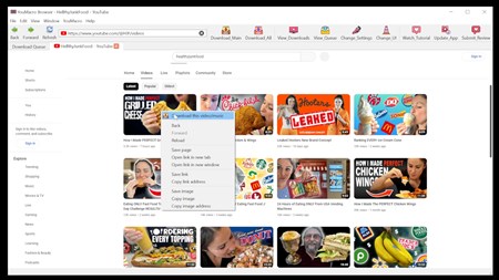 Alternatively, simply right click on links and copy the address. This automatically starts the download. The following are some examples. (1) Right-click on video thumbnails in the browser and select "Copy Link Address". (2) Right-click on video thumbnails in the browser and press the hot-key for "Copy Link Address". (3) Right-click on text links in the browser and select "Copy Link Address".