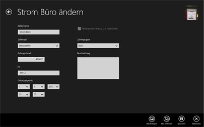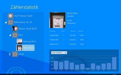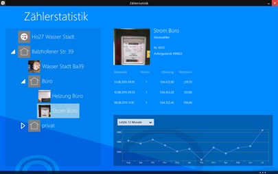 Zählerstatistik unterstützt die Erfassung und Protokollierung von Zählerständen unterschiedlicher Zähler. Für Wasser, Strom, Gas oder Betriebsstunden und viele weitere Zählerarten können Zählerstammdaten mit Anfangszählerstand angelegt werden. Anschließend ist in beliebigen Zeitabständen die Erfassung des Zählerstandes mit Ablesezeit (Datum und Uhrzeit) möglich.