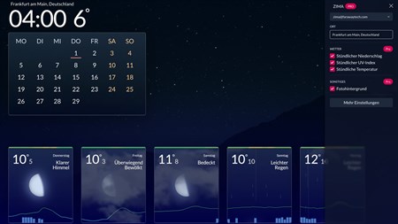 Ein ultimatives Dashboard für zu Hause mit Uhrzeit, Kalender, Fünf-Tage-Wettervorhersage, Tag-/Nachtmodus, UV- und Niederschlagsvorhersagen und mehr.