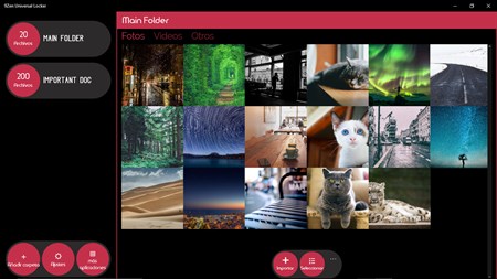 Cree, elimine, bloquee, copie y mueva multiples carpetas en su casillero. Modo pantalla completa para imágenes y videos. Comparta sus fotos y videos fácilmente.