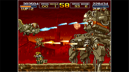 METAL SLUG 2 is an action game released by SNK in 1998. Players can choose from Marko, Tarma, Eri and Fio, with the aim of defeating Morden’s Rebel Army which is plotting a coup once again. In addition to the Heavy Machine Guns and Shotguns from the previous games, new weapons such as laser guns have been added for even more battle variations.