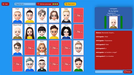 Cada jugador dispone de un tablero idéntico de 24 personajes con su nombre. Se te asignará un personaje aleatorio que el otro deberá adivinar, para ello los jugadores harán preguntas entre sí por turnos, preguntas relativas a los personajes con el fin de acotar las posibilidades y adivinar primero. Los jugadores tienen 3 oportunidades de elegir el personaje del contrincante, si fallan las 3 veces pierde automáticamente.