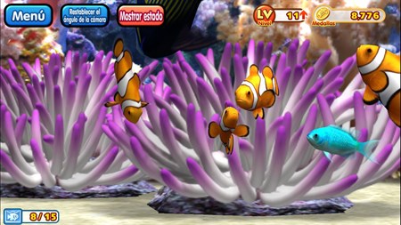 ■ Cría peces tropicales Cuando tus peces tropicales tengan hambre, toca la superficie del agua para alimentarles.
