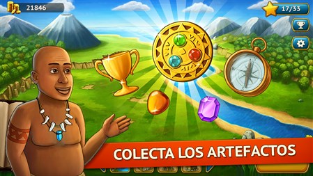 Características del juego: ● Mezcla única de juego match3, colapso y rompecabezas ● Restaurar y decorar la isla tropical ● Recoge tesoros antiguos, amuletos, joyas ● Conoce personajes simpáticos ● 150 niveles divertidos y adictivos ● Juega en modo relajante o temporizado ● Juego de lógica para toda la familia ● ¡Emprende una aventura en la isla paradisíaca!